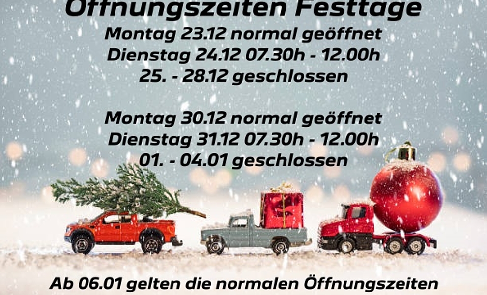 Nous sommes ouverts pendant les fêtes de fin d'année comme suitDE PLUS »