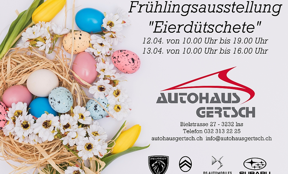 Nous nous réjouissons de votre visite avec « taper les oeufs » chez Autohaus Gertsch AG !DE PLUS »