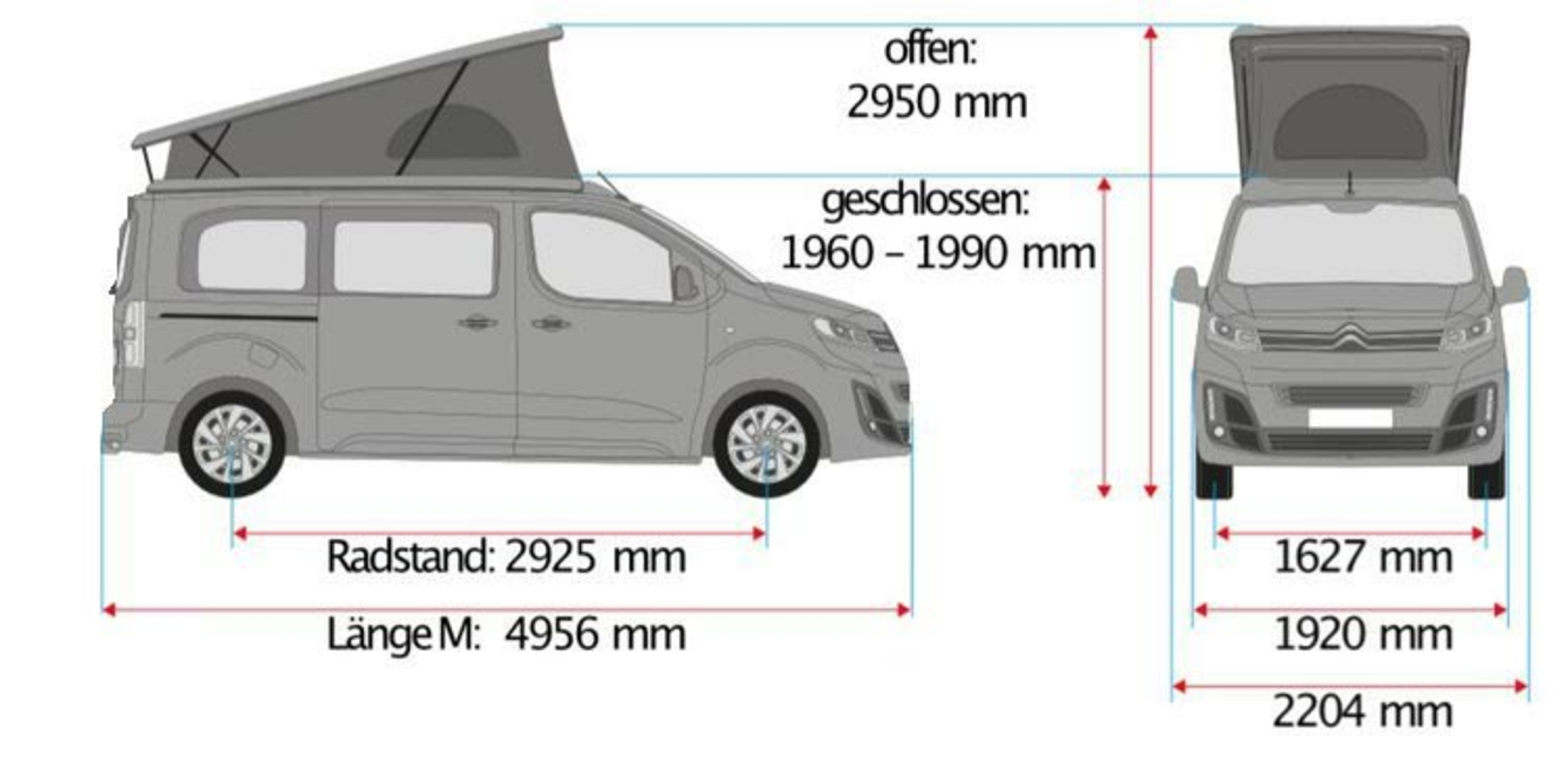 - Gesamthöhe unter 2 m (bei geschlossenem Schlafdach)